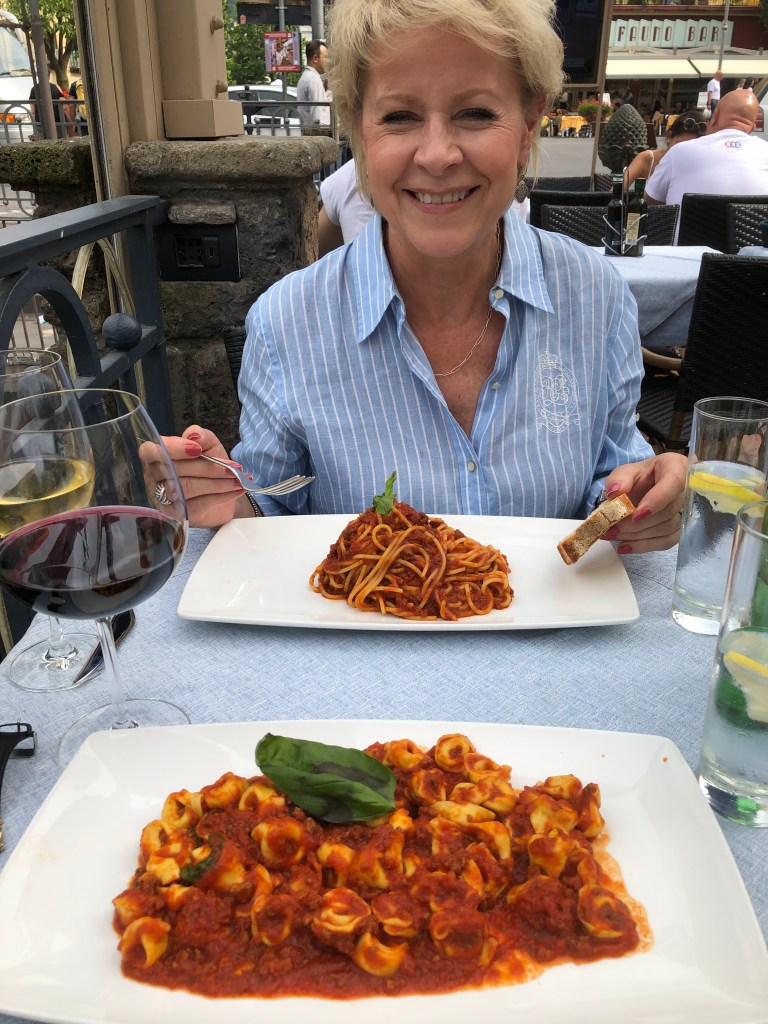 My wife, Vicki, about to devour her spaghetti dish at a cafe in Sorento, Italy. That’s my own pasta dish in the foreground, along with a really fine house red. Swallowing had a whole lot to do with enjoying this dinner – though I didn’t think of it that way at the time.
