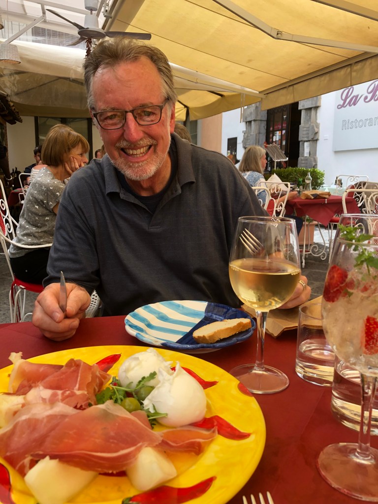 Prosciutto and mozzarella appetizer in Tivoli, Italy. Again, swallowing required.