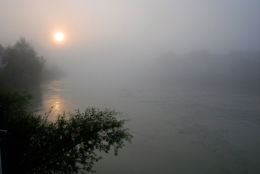 The signal was green for Rocky Ridge Road as I approached the intersection, but the yellow soon glared and went to red as I pulled my car up to the white line. The asphalt flares into four turn lanes at that point, one going right, three going left, and I occupied the middle of the left three. Soon cars were on either side of me and I stared across the intersection at the opposite tree line. My gaze strayed upward to a disc glowing through the misty clouds moving like rags across the sky. The disc was about the size of the full moon, and it dawned on me that I was looking directly at the sun, partially but not completely shaded by the translucent clouds. Bands of slightly thicker clouds in the atmosphere striped the disc so that it resembled photos of Jupiter taken through the Hubble telescope.